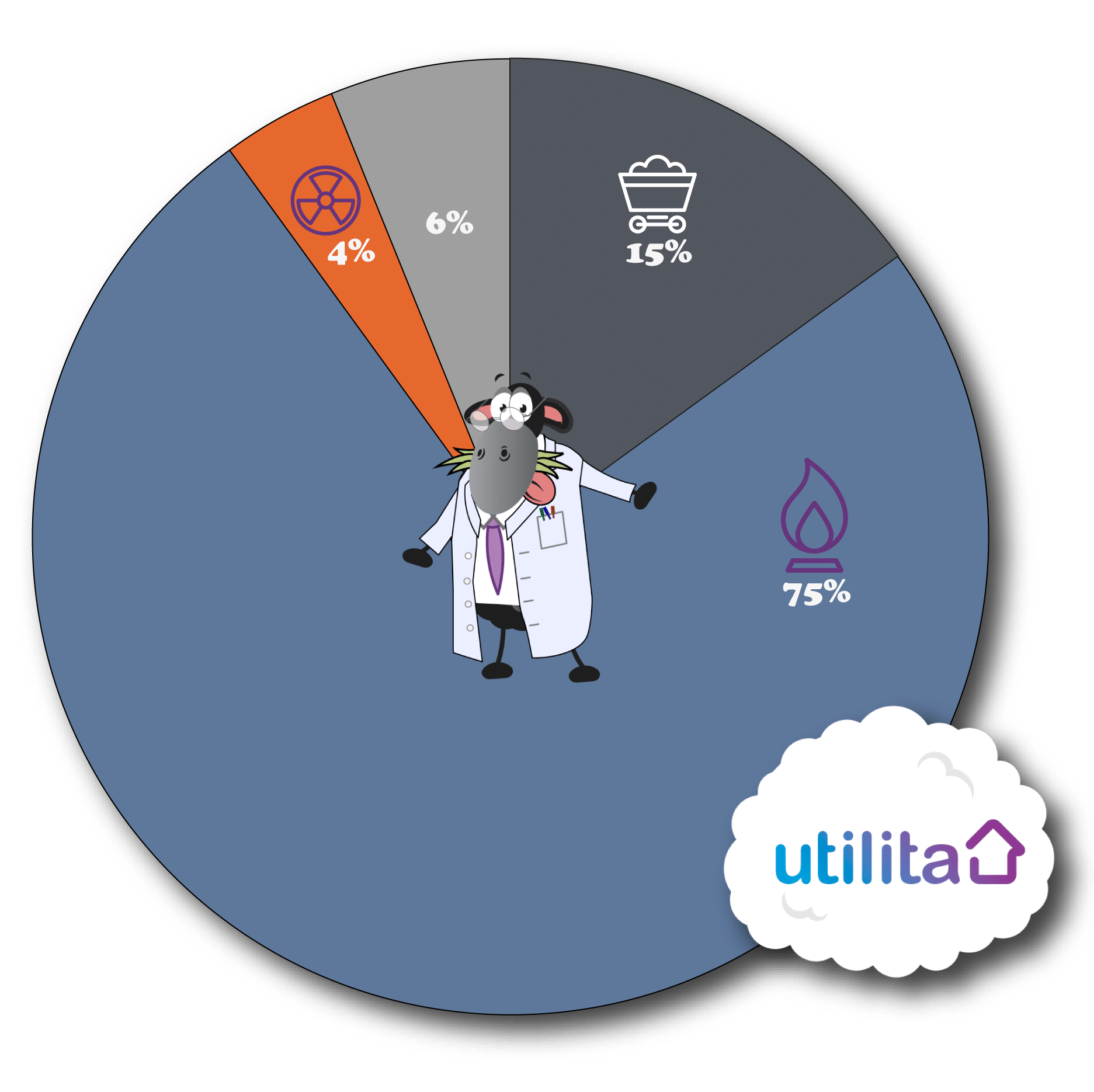 The current Utilita fuel mix consists of 15% Coal, 75% Natural Gas, 4% Nuclear and 6% Other Fuel Sources.